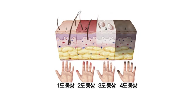 동상은 노출 정도와 시간에 따라 1도에서 4도까지 구분됩니다.